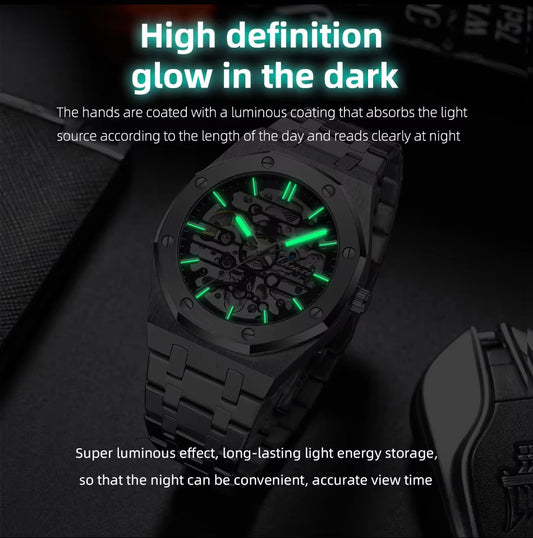 DIFFUL (®) WT0005 Automatic Skeleton Watch – Stainless Steel, Luminous, 30M (3ATM) Water Resistant