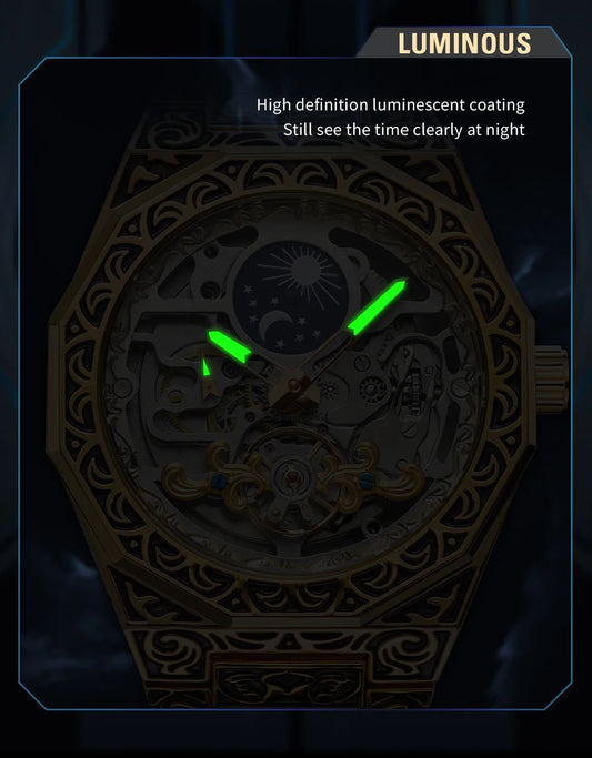 BENYAR (®) 5202 Automatic Skeleton Men’s Watch – Luminous Dial, Leather Strap