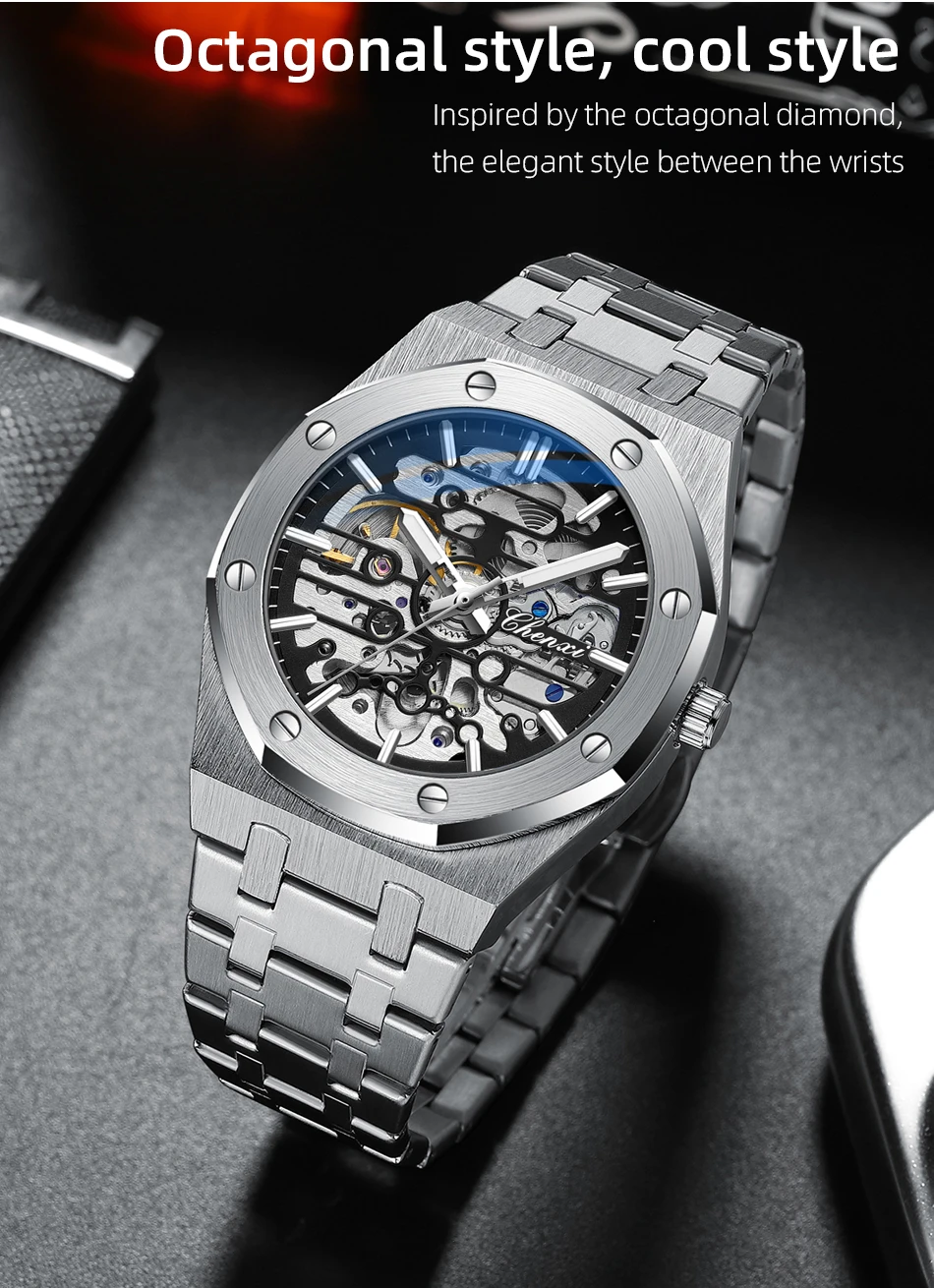 CHENXI (®) 8848 Automatic Skeleton Men’s Watch – Gold Tone Case 30M (3ATM) Water Resistant