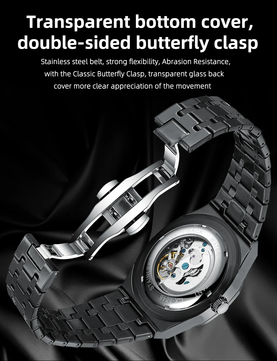 Automatic mechanical movement – powered by wrist motion, no battery required