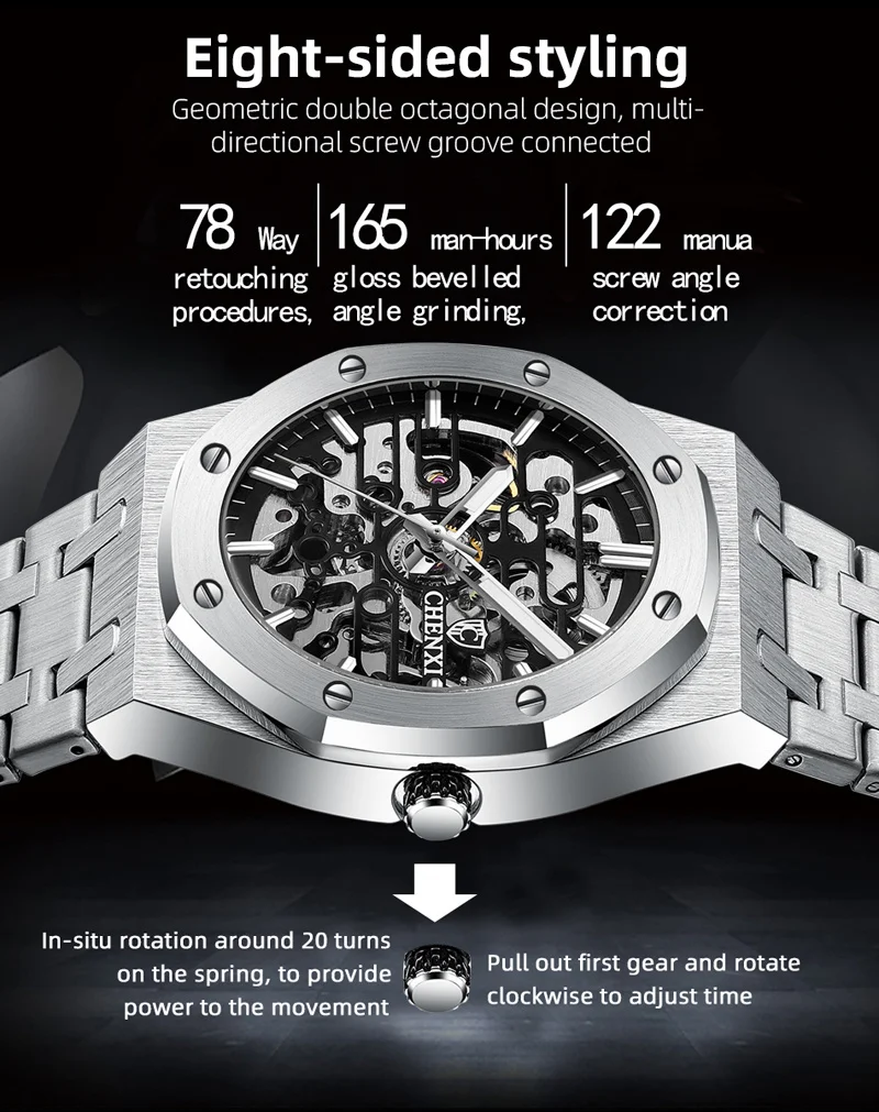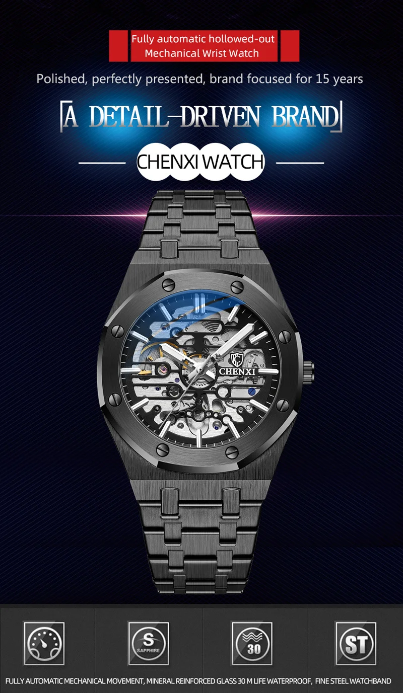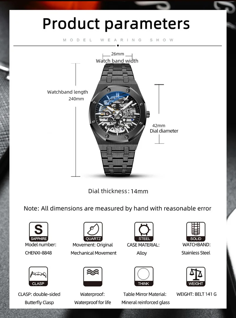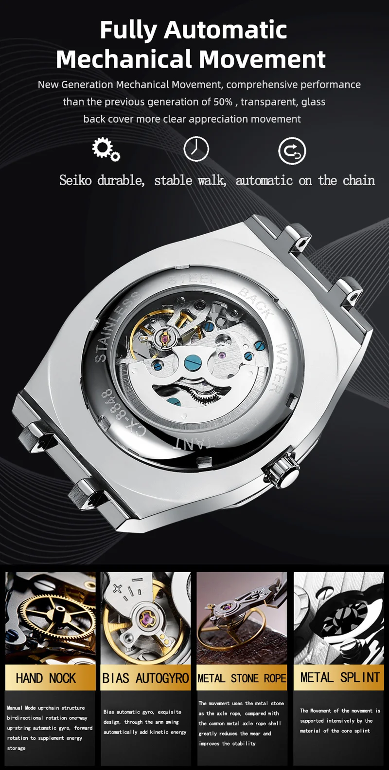 CHENXI (®) 8848 Automatic Skeleton Men’s Watch  50M (5ATM) Water Resistant