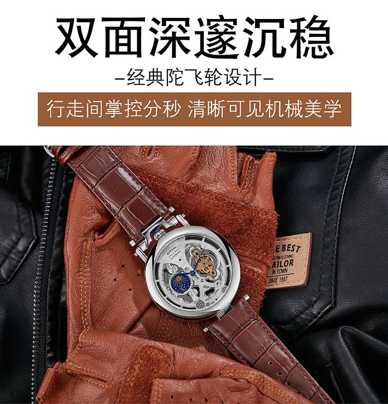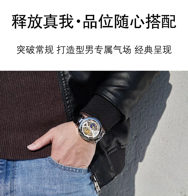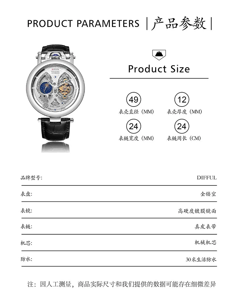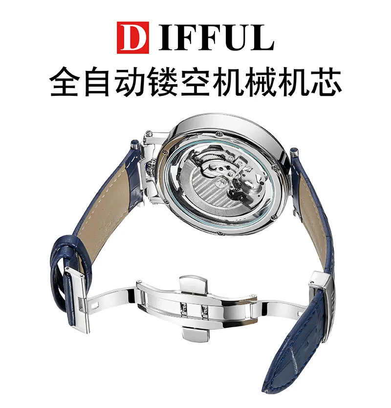DIFFUL (®) WT0005 Automatic Skeleton Watch – Stainless Steel, Luminous, 30M (3ATM) Water Resistant