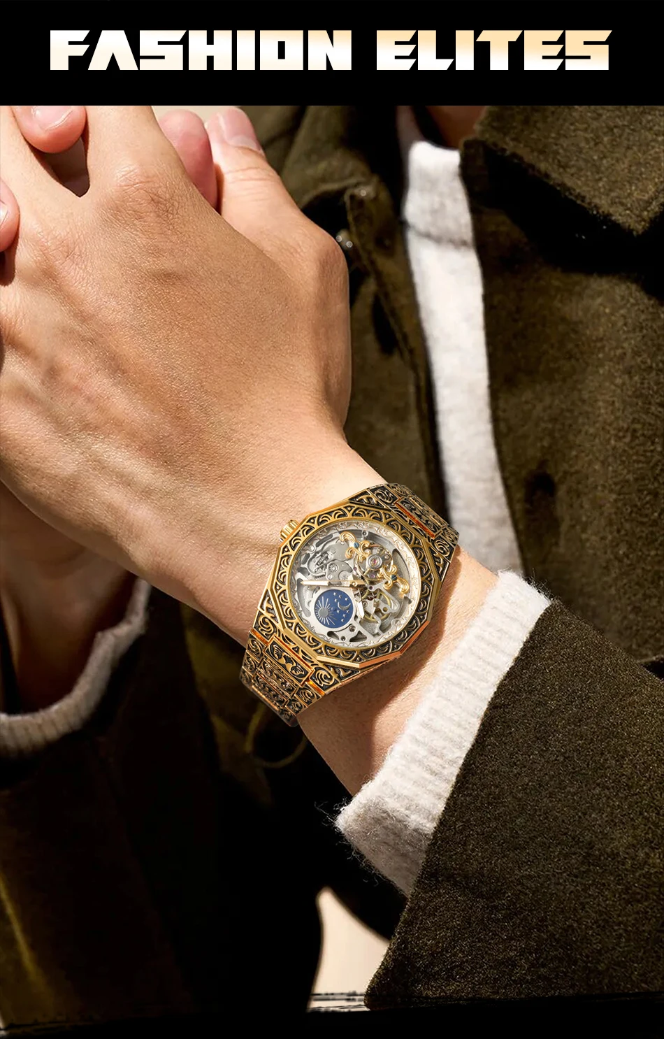 Automatic mechanical movement – powered by wrist motion, no battery required